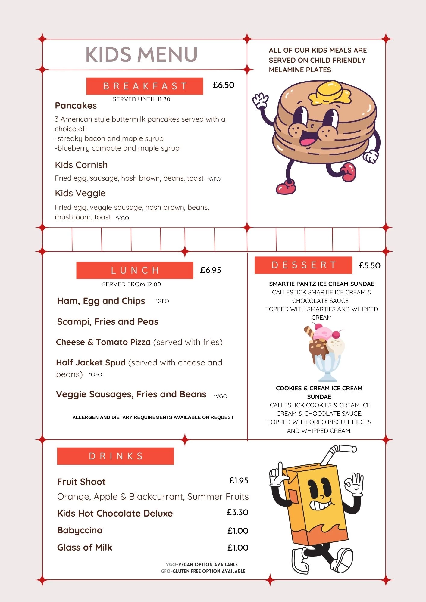 Start your day with a full Cornish breakfast, fluffy pancakes, or one of our delicious brunch stacks.